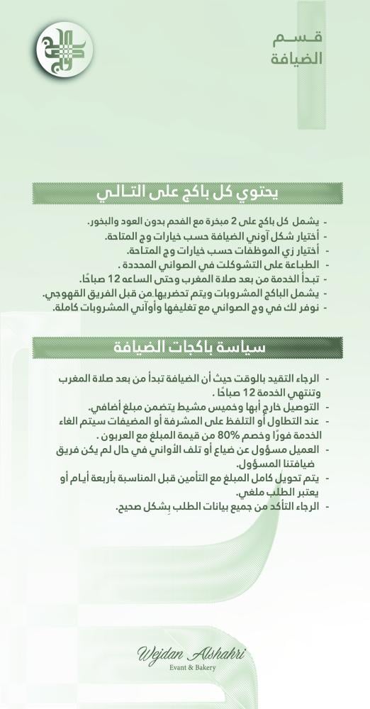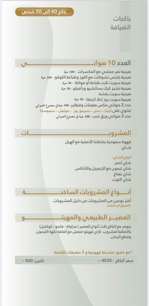 نقدم لكم في هذا البكج خدمه ضيافه متكامله